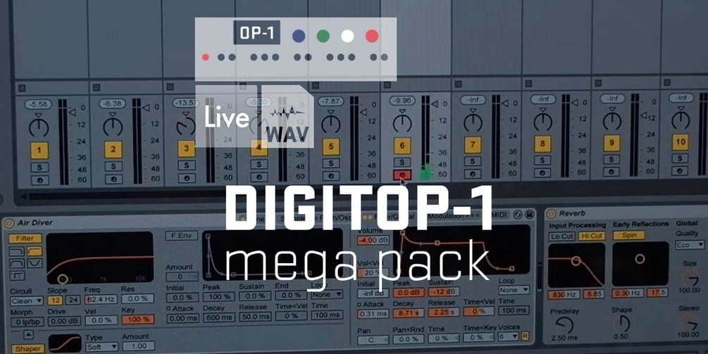 The 30 Ableton Live patches are collected into a Ableton Live Project together with the music seen in the video. The patches respond to velocity and mod wheel, and there's a good variety of stuff in there ready to go. Within Live, just lift the patch into your library to save them.